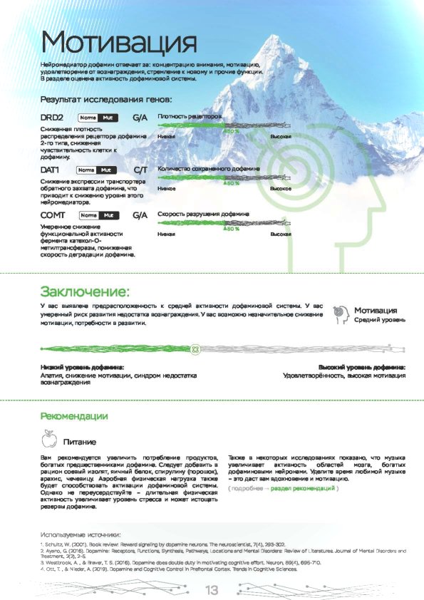Эмоции и психические состояния регулируются нейромедиаторами — особыми химическими соединениями, они регулируют передачу электрохимического импульса между нейронами, а также между мозгом и мышцами. Интенсивность работы нейромедиаторов определяется генами. Проанализировав определенные гены можно повысить эффективность работы, самочувствие и снизить уровень стресса.